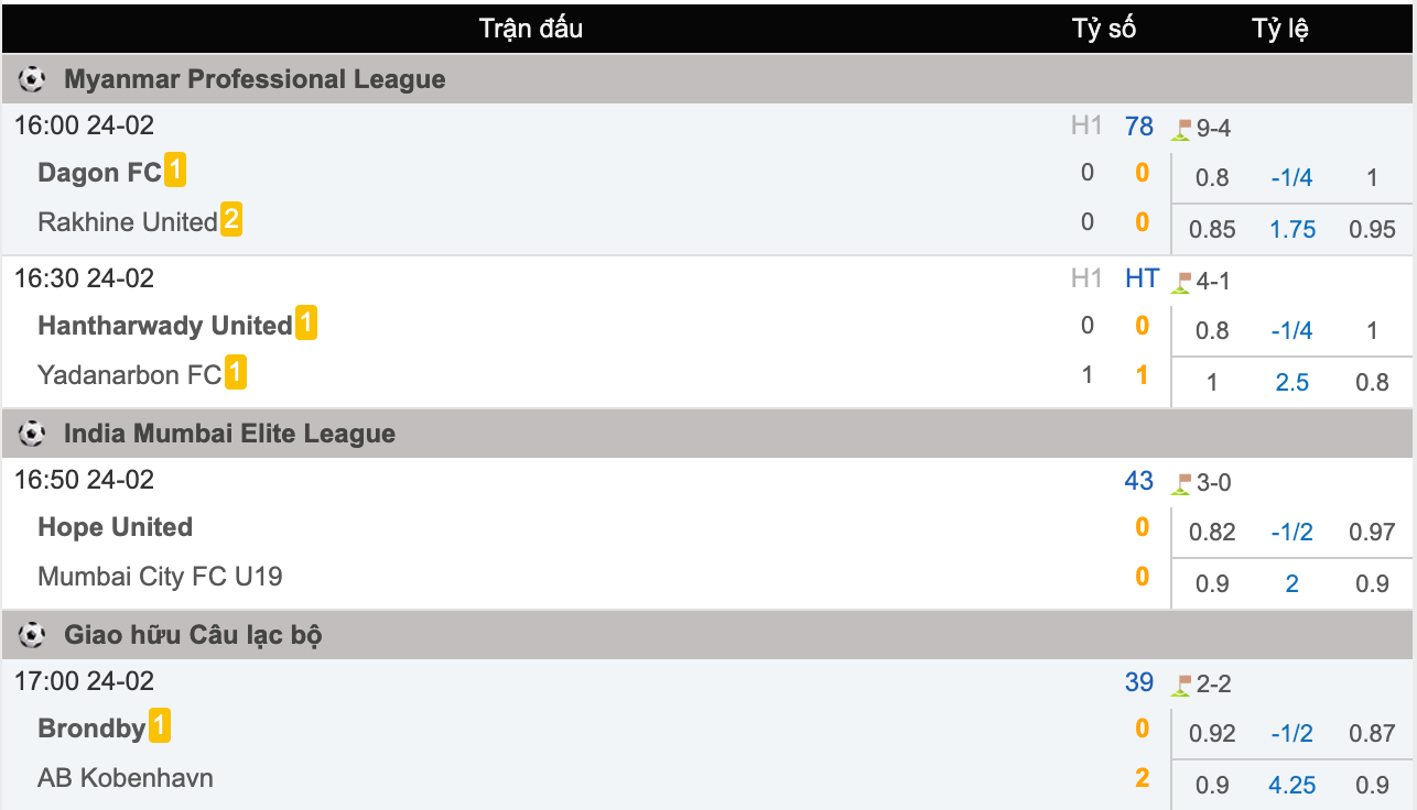 Xem tỷ số trực tuyến bóng đá nhanh chóng, chính xác 7M CN